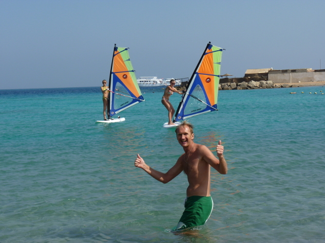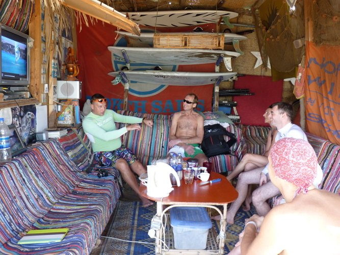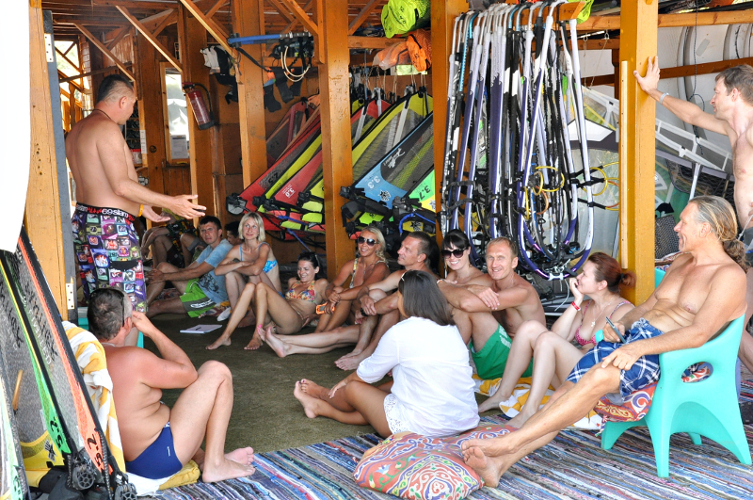 - Утром короткий урок по виндсерфингу, небольшая разминка, каталка со съемкой видео на